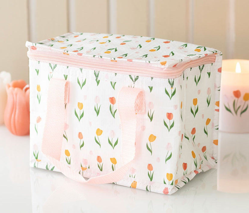 Pack your lunch in style with this insulated lunch bag made from recycled plastic and printed with a sweet tulip design. Both practical and pretty, it keeps food fresh on the go and makes a great gift for eco-conscious mums, teachers or floral lovers.